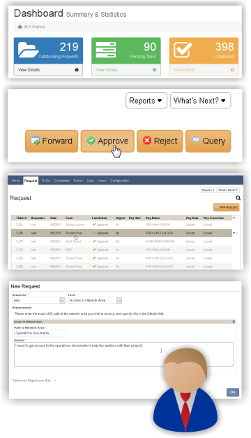 WorkflowFirst lets you create workflow out of any form in your organization, whether that form is defined in WorkflowFirst, or entered in a different application - through the extensive APIs in WorkflowFirst any action can be routed through the workflow system, so that everything can be managed in one place.